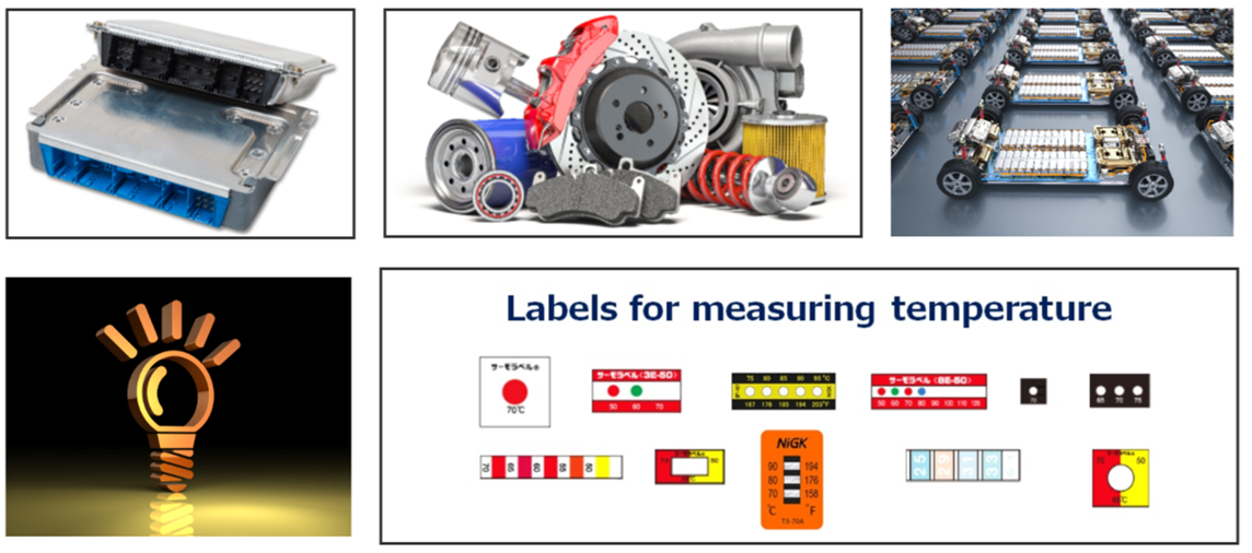 Appropriate temperature control enables products to meet performance requirements. In automotive fields, temperature labels are used to ensure the quality of mass production such as brakes, transmission, wheel, axle, tire, engine component parts and other countless parts.