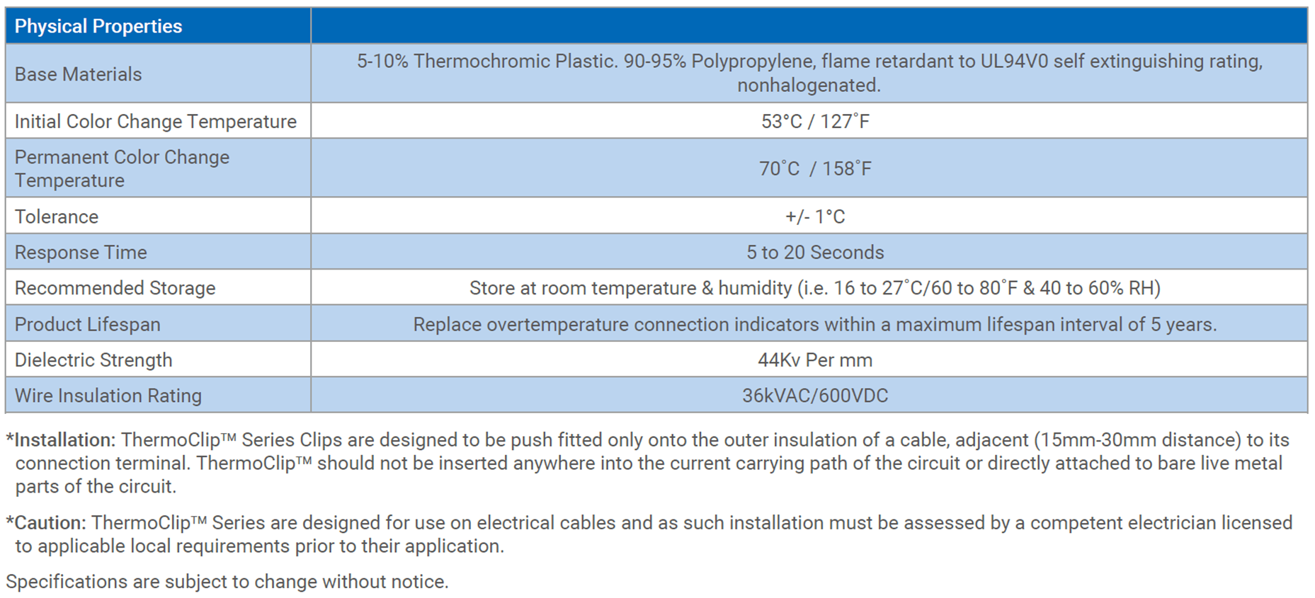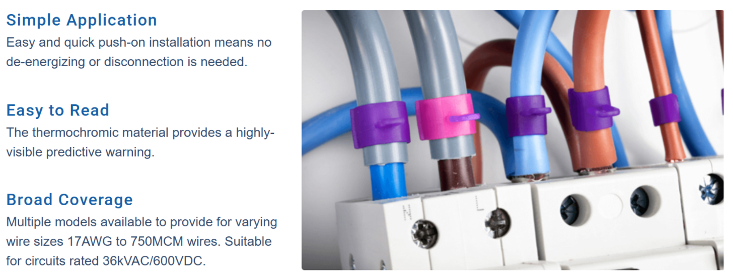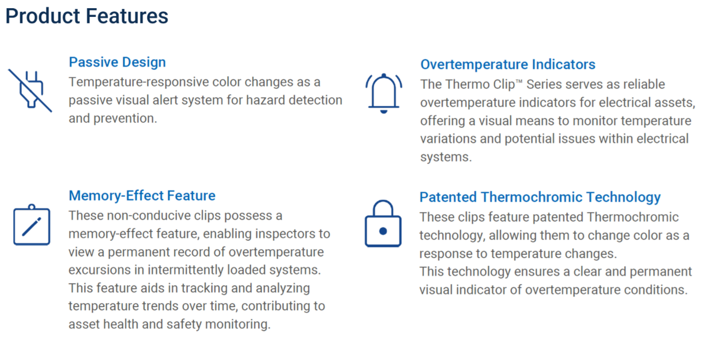 The ThermoClip™ Series serves as overtemperature indicators for electrical assets. With a memory-effect feature, these non-conducive clips can let inspectors see a permanent record of overtemperature excursions in intermittently loaded systems.